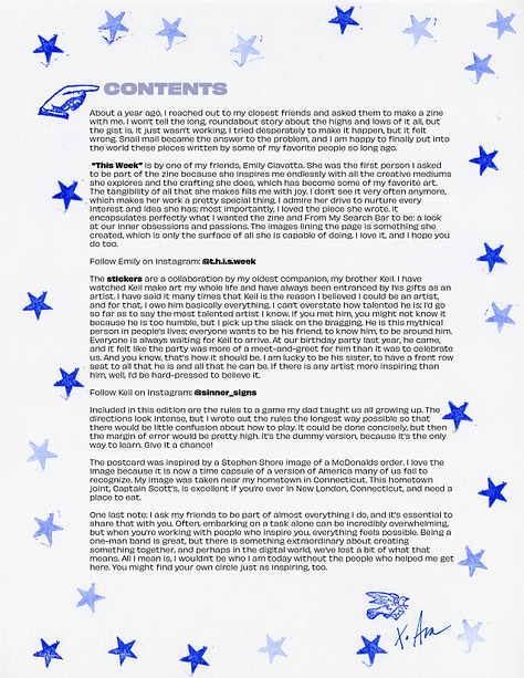 In an effort to keep snail mail not exclusive, here are some digital files of what was sent out to everyone who pays for a tangible version of my newsletter! This dispatch could not have been done without the help of my brother, Keil, for the stickers and Emily for the essay!